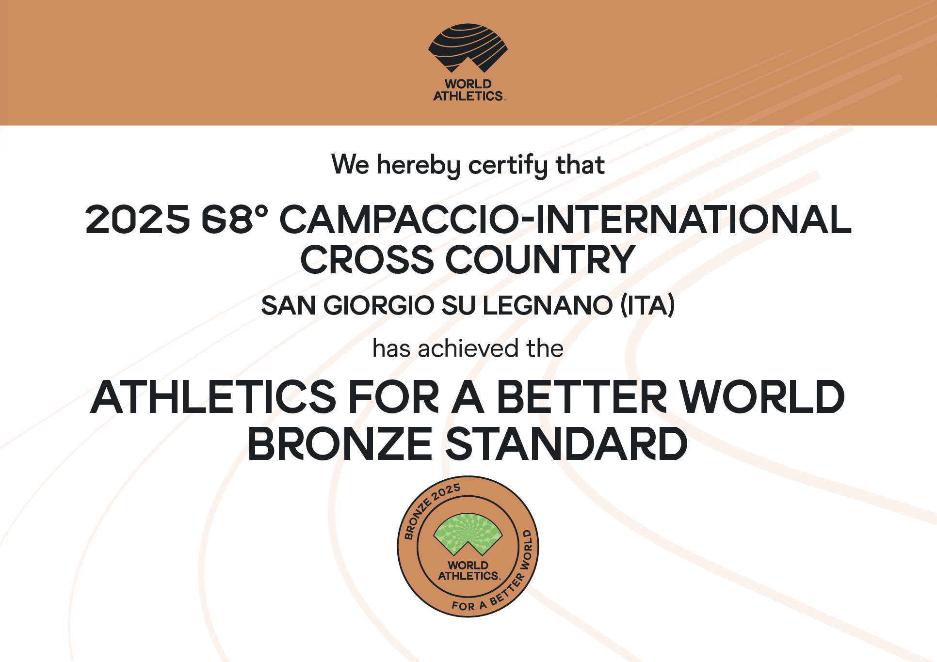 A seguito della rendicontazione 2025 il Campaccio è stato certificato come il primo evento di corsa campestre al mondo ad essere ufficialmente riconosciuto da World Athletics come evento sostenibile di livello “bronze”, secondo i criteri dello standard internazionale Athletics for a Better World.