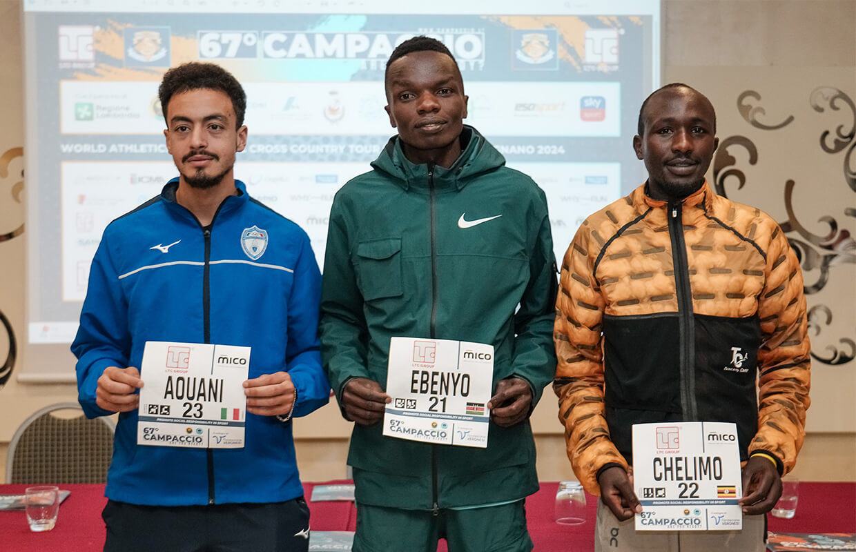 Dispiace dover segnalare le assenze di Neka Crippa e Yohannes Chiappinelli a causa di indisposizioni, confermato invece l’uomo da battere, il keniano Daniel Ebenyo, neoprimatista mondiale di 25 km su strada stand alone, doppio argento mondiale assoluto nel 2023: a Budapest in pista sui 10000m e a Riga su strada in mezza maratona; non trascurabile il 6° posto negli ultimi Campionati Mondiali di Cross nell’australiana Bathurst; primati di 26’57” sui 10’000m e 59’04” in maratonina. Il coprotagonista atteso, già noto ai sangiorgesi, è l’ugandese Oscar Chelimo, bronzo ai Campionati Mondiali 5000 m nel 2022, qui al Campaccio già terzo nel 2021 e quarto nel 2023.